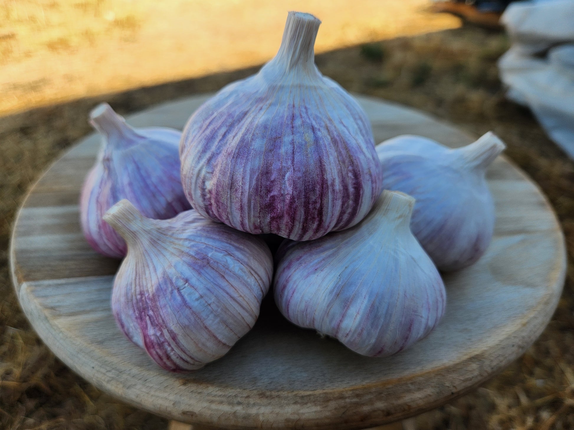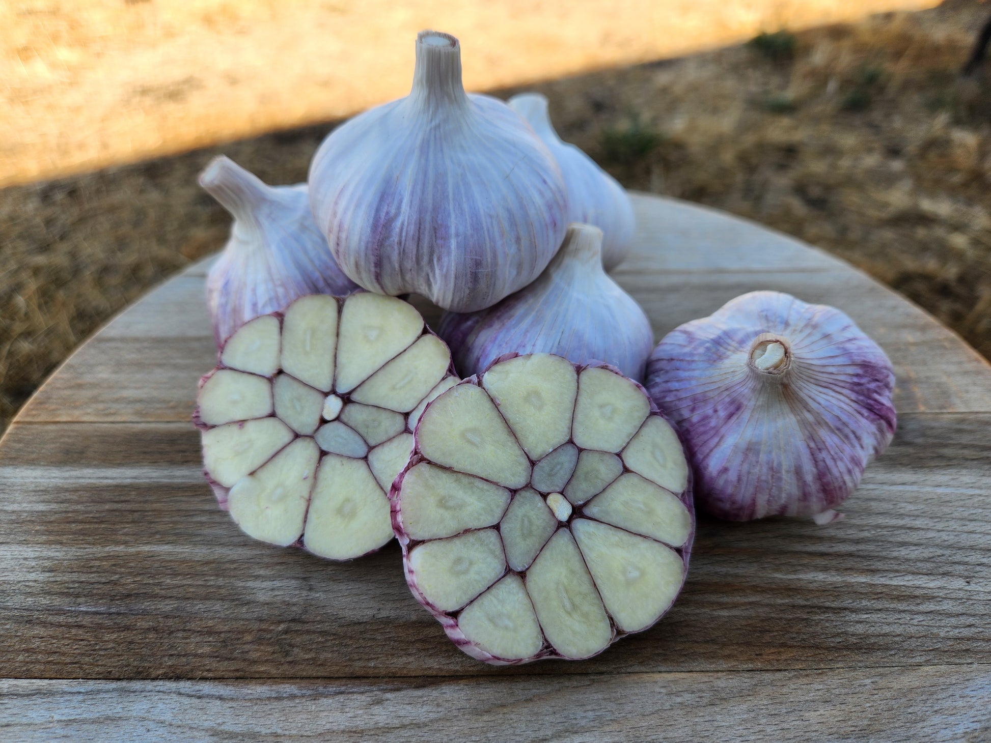 Beautiful red stripes run vertically down these bulbs. Grows well in both cold and warmer climates. Later maturing than Music or Old German. Chesnok is originally from the Republic of Georgia located in the Caucasus region of eastern Europe. Lots of cloves per bulb makes Chesnok a great variety for quickly expanding your garlic production.